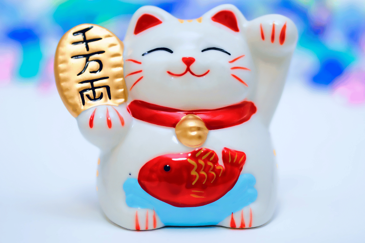 O Maneki Neko, ou “gato que da tchau”, é uma figura icônica na cultura japonesa. É um amuleto que atrai sorte e muita riqueza.